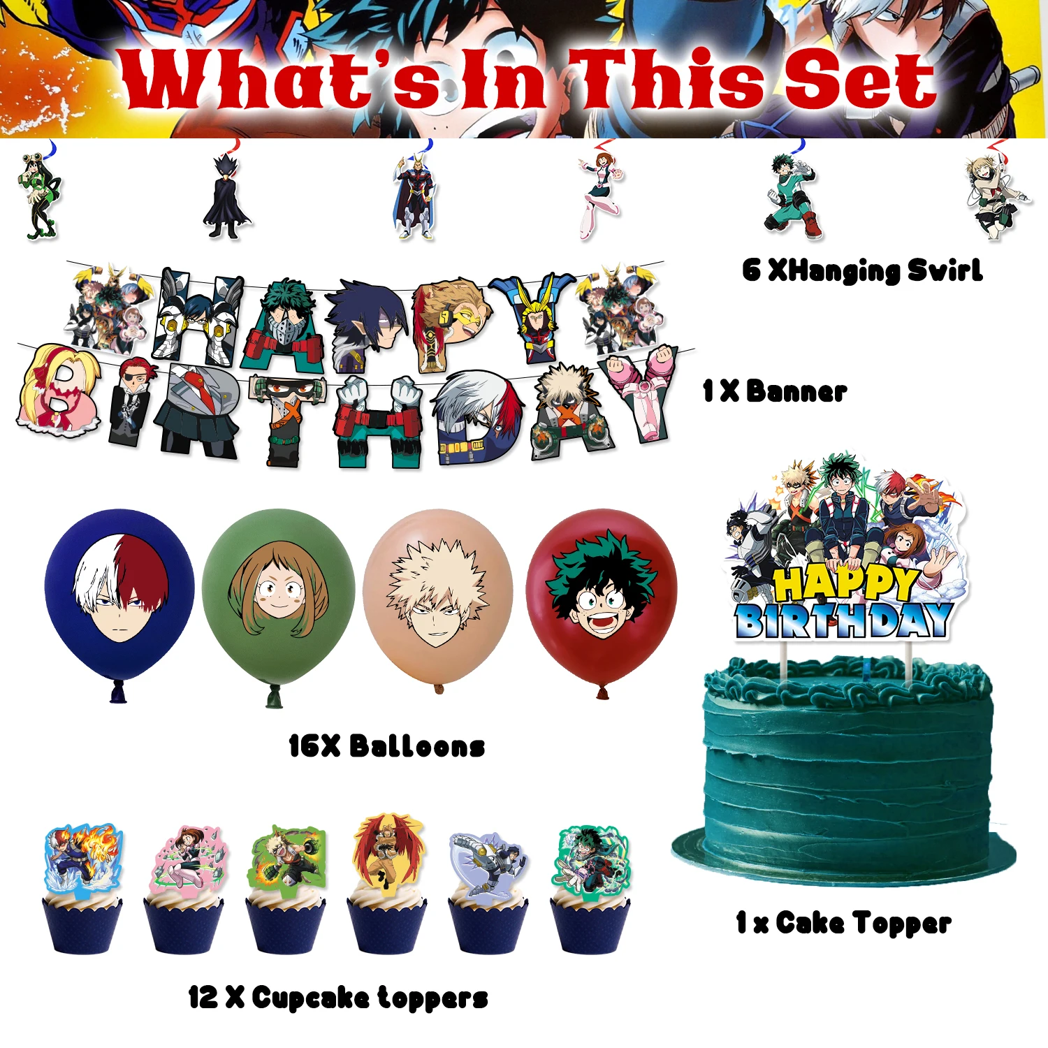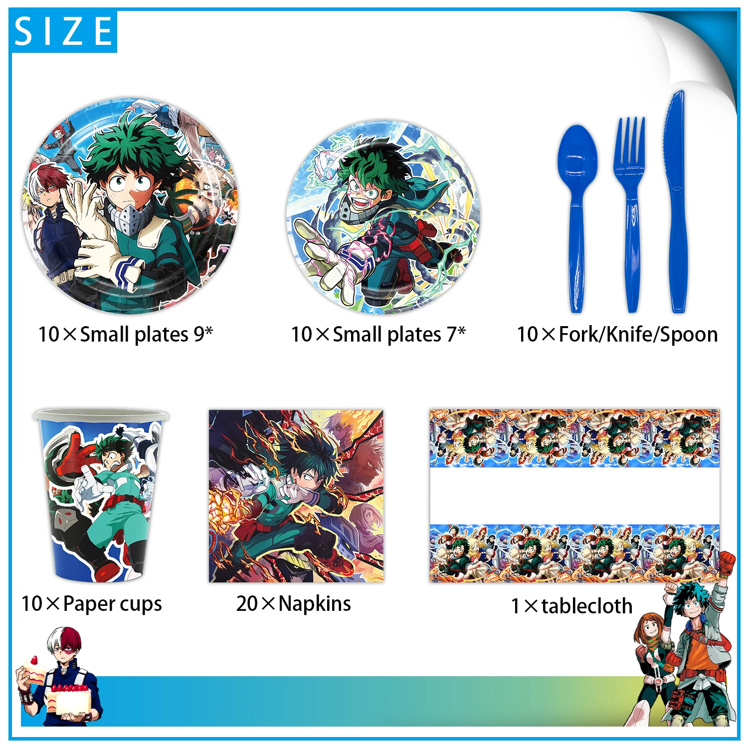 My Hero Academia Birthday Party Kit – Cake Topper & Tableware